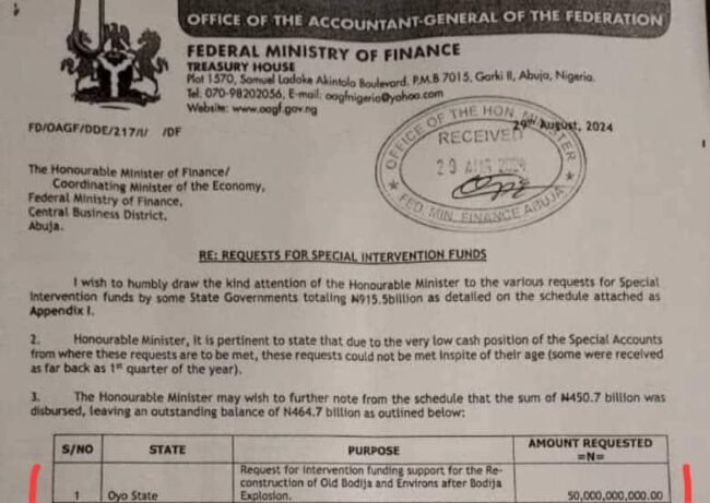 Two days ago, I said on a national television that Oyo State under Governor Seyi Makinde got a sum of N50bn from the Federal Government as intervention on the January 2024 explosion in Ibadan.