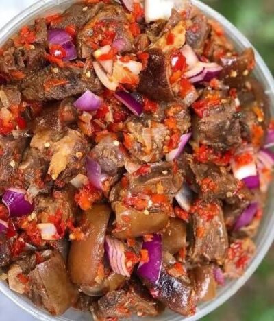 In major towns, cities, and villages, such delicacies, laced with periwinkle and scent leaf, are familiar sights at roadside spots, including vendors balancing pots of dog meat on their heads for readily available customers.
