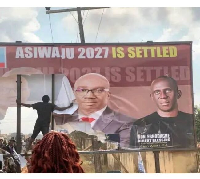 The destroyed billboard has the inscription, ‘Asiwaju 2027 is settled’.