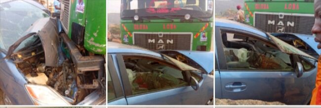 The accident occurred when a tipper truck collided with a private vehicle at a busy junction in the area. Eyewitnesses said the car was heading from the Shasha axis while the tipper was approaching from the Airport Road direction when the two vehicles crashed.