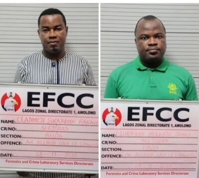 The Lagos Zonal Directorate 1 of the Economic and Financial Crimes Commission (EFCC), Ikoyi, Lagos, on Tuesday, March 3, 2026, arraigned two bank officials, Bakare Oladimeji Surajudeen and James Olukayode Imokwede, over an alleged $306,667.81 and €50,250 fraud before Justice Ismaila Ijelu of the Lagos State High Court sitting in Ikeja.