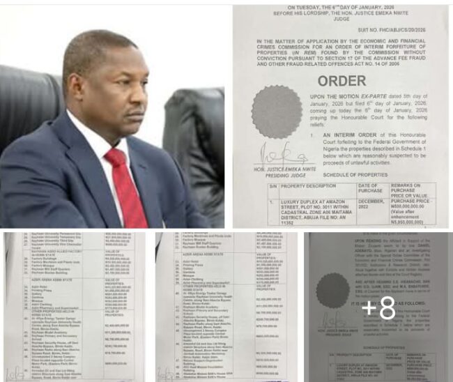 The assets, valued at ₦213.2 billion, include multi-billion naira landed properties spread across Abuja, Kebbi, Kano, and Kaduna States. The court ruled that the assets are suspected to be proceeds of unlawful activity.