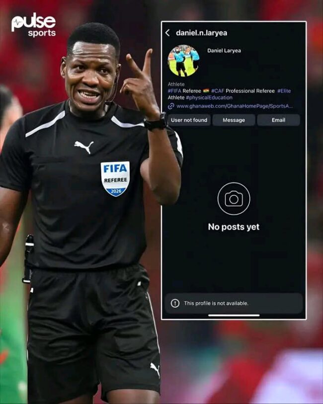 Shortly after the game, users on X (formerly Twitter), Instagram, and Facebook began sharing screenshots claiming that Daniel Nii Laryea’s Instagram page was no longer accessible or had been restricted in Nigeria. While it remains unclear whether the referee personally disabled his account or if it was overwhelmed by mass reporting, the situation highlights the intense emotions that football can generate across the continent.