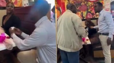 The older man then introduced himself as the lady’s fiancé, insisting the young man had no right to question him. Confused and visibly heartbroken, the younger man countered by saying he had been dating the woman for over five years.