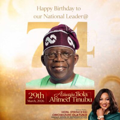 Hon. (Princess) Omowunmi Olatunji-Ohwovoriole, former Commissioner for Women Affairs and Social Development in Ondo State and frontline aspirant for the House of Representatives, Akure North and South Federal Constituency, heartily congratulates the President of the Federal Republic of Nigeria, Bola Ahmed Tinubu, on the joyous occasion of his birthday.