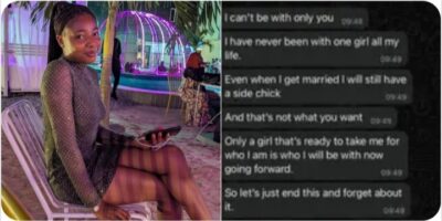 “I’ll always have a side chick” – Lady shares ‘unexpected’ breakup message she received from boyfriend