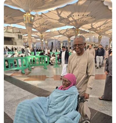 El-Rufai was photographed pushing his mother in a wheelchair as they performed the Lesser Hajj (Umrah), one of Islam’s sacred acts of worship.