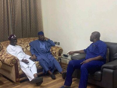 The Special Adviser on New Media and Communication to the Minister of the Federal Capital Territory and chieftain of the Peoples Democratic Party, Lere Olayinka stated on his verified Facebook page on Thursday; “Ekiti State Governor, Biodun Oyebanji and his Edo State counterpart, Senator Monday Okpebholo, during a visit to the former Governor of Ekiti, Ayo Fayose, in his Lagos residence today.”