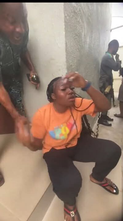 A young woman was apprehended and humiliated at a bank after allegedly trying to withdraw money using stolen ATM cards.