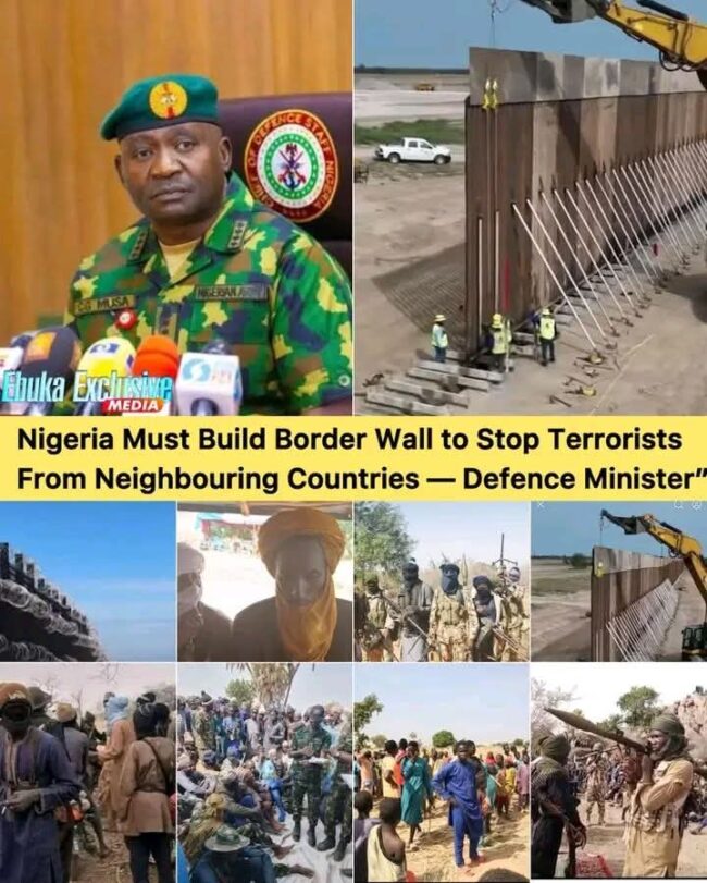 Nigeria’s Defence Minister, Christopher Musa, has called for the construction of a border wall and deployment of modern surveillance technology to stop terrorists, bandits, and other criminals from entering Nigeria through neighbouring countries.