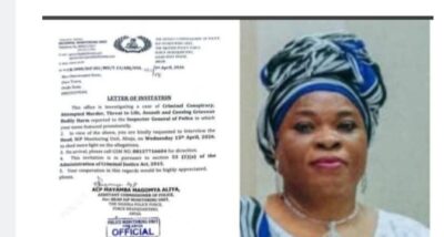 The invitation, which emanated from the Inspector-General of Police Monitoring Unit at the Force Headquarters in Abuja, was signed by Assistant Commissioner of Police Mayamba Magomya Aliya and she is expected to be quizzed on Wednesday 15th April, 2026.