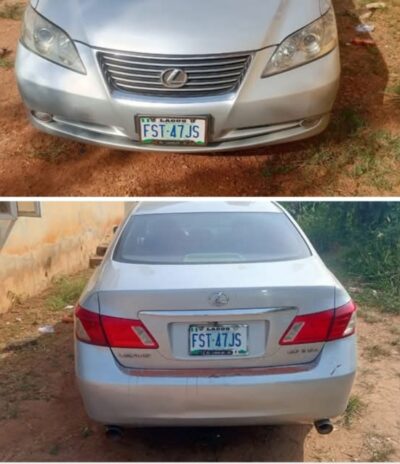 Subsequent inquiries confirmed that the Lexus ES350 was forcefully stolen at gunpoint in Warri, Delta State, in February 2022. Acting on this development, operatives of the Tactical Intelligence Response Squad arrested Alawuye, male; aged 31 and Tosin, male; aged 32 years, in connection with the crime and successfully recovered the vehicle. The suspect has made useful statements that are currently aiding efforts to apprehend other members of the criminal network.