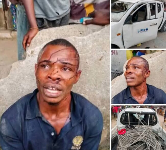 Youths in Odiereke Ubie Community, Ahoada West LGA of Rivers State, have apprehended a man identified as a PHED official for allegedly stealing electric cables and transformer parts.