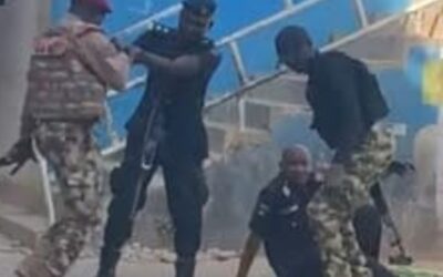 Although the reason for the altercation is yet to be disclosed, a social media user said trouble started after a policeman prevented an aggrieved soldier from arresting a trader.