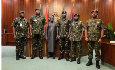 Those present include the Chief of Defence Staff, the Chiefs of the Army, Navy and Air Staff, the Director-General of the Department of State Services, the Director-General of the National Intelligence Agency, and Inspector-General of Police, Tunji Disu.