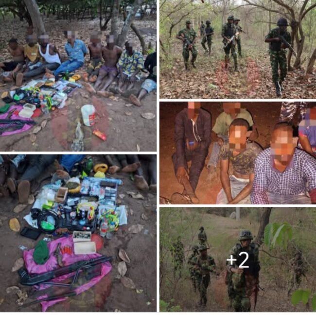 During the operation, eight suspected kidnappers and illicit drug peddlers were arrested. The suspects were identified as Jamilu Mohammad (25), Kasim Abu (33), Braimoh Affeez (31), Sulaiman Hamisu (36), Lawan Umaru (25), Bawa Auwal (24), Musa Umaru (40), and Amodu Attai (50). Weapons recovered from the suspects include one English Auto Pump-action gun, four live cartridges, and one locally made pistol.