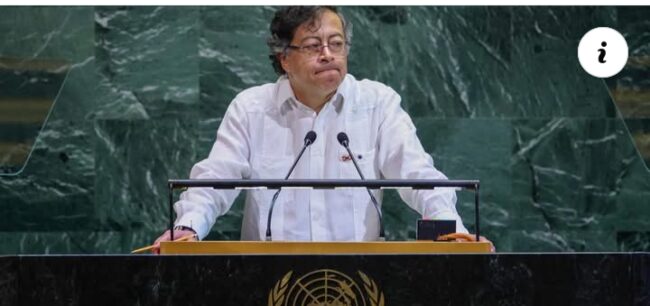 (FILES) Colombian president Gustavo Petro speaks during the General Debate of the United Nations General Assembly at the UN headquarters in New York City on September 23, 2025.